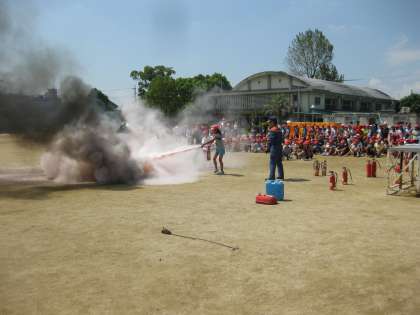 第2回避難訓練 公開日 2012/09/07 更新日 2012/09/07 学校行事 9月7日(金) 今年度2回目の避難訓練を行いました。今回は,休み時間中に地震が起き,火災も発生したという想定で実施しました。授業中ではないので,担任の先生の指示に頼ることなくどうしたら自分の命を守ることができるかを考えて行動する訓練でした。けがをして自分で避難できなくなった子も設定するというより実践的な訓練ができました。 避難完了後は,5年生6年生は消火訓練,1年生〜3年生は煙体験を行いました。 いいね(0)
