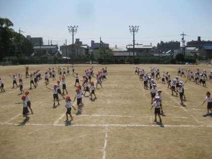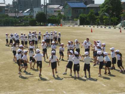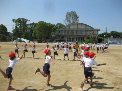 1年生は運動会で「うらじゃ音頭」を踊ります。1学期から練習を開始し、今日はその踊りの確認と入場・退場の仕方を練習しました。