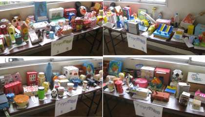 夏休みの作品募集で作ったアイデア貯金箱が廊下に展示してあります。アイデア貯金箱は,作品をデジタルカメラで撮影しそのデータを応募することになっているので,作品は学校にあるのです。今朝はテレビ朝礼で,校長先生から特にアイデアがおもしろい作品やネーミングが工夫された作品の紹介がありました。