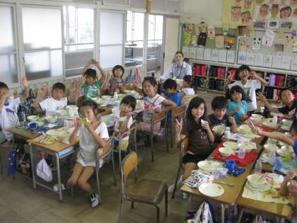 午前中は2組〜4組,午後は1組と5組,給食は2組でいっしょに食べました。