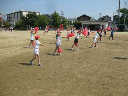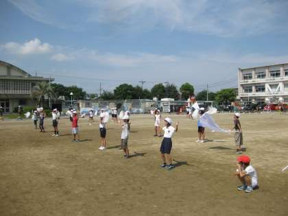 4年生以上の各学級から選ばれた応援団は、毎日、休み時間返上で応援練習に取り組んでいます。今日は運動場に出て実際の立ち位置に並んで練習しました。今週は、雨のため全校での練習はできませんでしたが、来週は全校練習の中で応援練習を予定しています。
