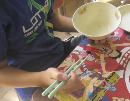 食欲の秋〜給食の箸が変わりました〜 公開日 2012/10/04 更新日 2012/10/04 その他 10月3日(水) 食欲の秋です。今日のメニューは「手巻きご飯」です。手巻き海苔にご飯をのせて,納豆や即席漬けをトッピングしています。もちろん,ちゃんと巻いて食べている子もいます。 今日から箸が変わりました。子ども用は水色,大人用が茶色です。みんな,正しく箸を持って食べているかな? いいね(0)