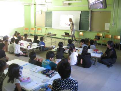 岩倉ユニバーサルデザイン研究会の皆さんを講師にお招きして、「ユニバーサルデザインとは何か」と言うお話を聞きました。その後、子ども達は普通の文房具とユニバーサルデザインの文房具の違いについて、気がついたことを発表していきました。