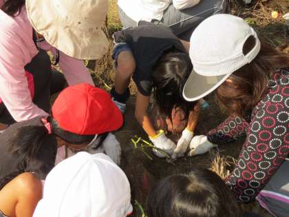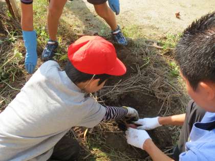 いもほり 公開日 2012/10/16 更新日 2012/10/16 その他 10月16日(火) 6組7組のみんなが教室前の畑で育ててきたさつまいもを掘りました。かぼちゃくらいある大きないももありました。いもはいもきんとん,ツルは乾燥させてリースを作ります。 いいね(0)