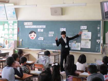 9月29日から10月26日まで,2名の教生(教育実習生)が教育実習に来ています。今日は2時間目に2年生の学活の授業実習,3時間目に5年生の算数の授業実習に取り組みました。2年生は「たいせつな目」について勉強しました。5年生は「人文字を作るときの人数」についてグループで話し合いました。