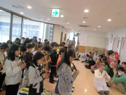 各学級ごとに福祉施設を訪問しました。行き先は、さくらの家、みのりの里、デイケアセンターかみの、ライフケア岩倉です。高齢の方や障害のある方でも、施設を利用しやすい工夫や、社会に貢献している姿を見て、福祉施設の工夫や大切さを学びました。見学させて頂いたお礼に、朝の会で練習してきたリコーダーを演奏しました。