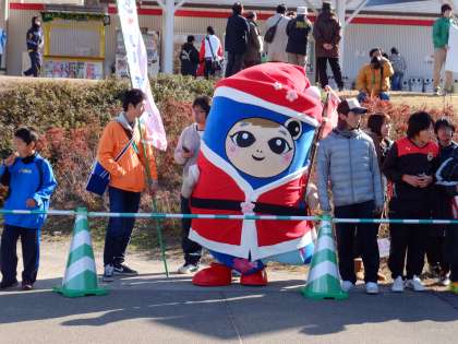 先週の土曜日に愛知駅伝が愛知万博記念公園でありました。本校の職員が今年も選手として走りましたので、今年も応援に行ってきました。岩倉市のキャラクター「い〜わくん」がクリスマススタイルで応援してくれました。