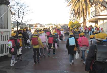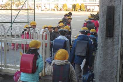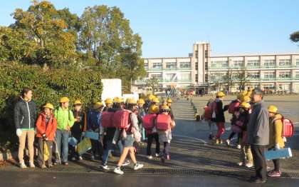 今日からペア学級であいさつ運動に取り組んでいます。今日は、4の1と2の1の子どもたちが自分が登校してきた門に立ってあいさつを呼びかけました。