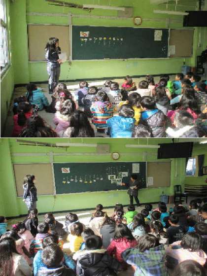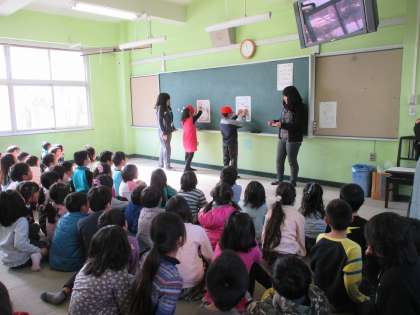 生活科の学習として、「お正月について知ろう」というテーマで学年集会を行いました。まず、お正月に食べるおせち料理や七草がゆには、それぞれ使う食材に意味があり、よい1年になるようにという願いが込められていることを学習しました。その後、福笑いで楽しく遊び、最後は琴の演奏を聞きました。普段なかなか聞くことができない琴の生演奏に子どもたちは聴き入っていました。日本に昔から伝わるお正月の文化に触れることができました。