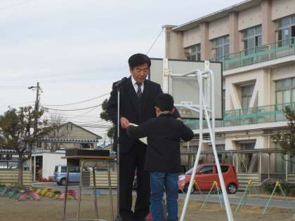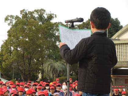 今日の朝礼で改めて校長先生から賞状を受け取った後、東京の表彰式で受賞者を代表して行ったあいさつを、全校児童にも披露しました。感想文同様、ユーモアのセンスあふれるあいさつでした。
