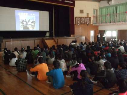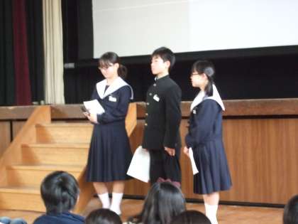 6年生は、岩倉中学校の1年生から、中学校の校則や行事、部活動などについて話を聞きました。中学校生活についてのクイズもあり、どの児童も真剣に考えていました。6年生からの「家庭学習の時間はどれくらいですか?」や「部活の練習はどんなことをやっていますか?」などの質問に対する、中学生の丁寧な答えを聞いて、中学校生活への期待が高まっているようでした。
