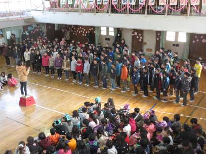 6年生を送る会 その2 公開日 2014/03/09 更新日 2014/03/09 学校行事 6年生を送る会の続きです。 3年生は、運動会での6年生の活躍をまねた応援と、リコーダー演奏でお祝いしました。4年生は、クラブ活動でお世話になったお礼の気持ちを「ライジングサン」のダンスに込めて表現しました。5年生は、「この星に生まれて」の合唱にお祝いと感謝と決意などすべての思いを込めました。 いいね(0)