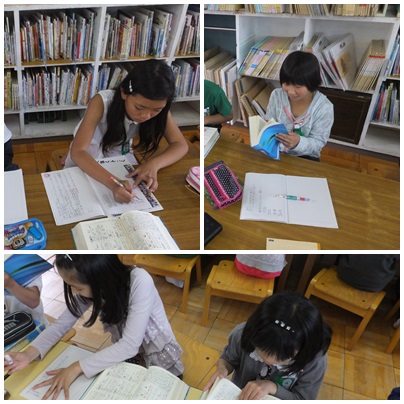 ○ 5月12日(月) 5年生が、図書館で、漢字辞典を使って漢字の成り立ちを調べています。