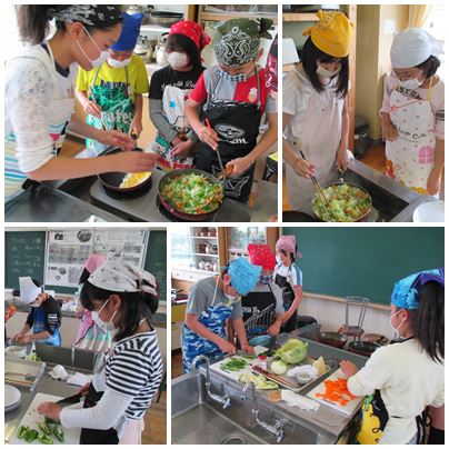 家庭科「朝食のおかずをつくろう」の授業で野菜炒めと卵料理の調理実習を行いました。グループで協力し合い、熱の通りが均一になるよう工夫して切ったり、炒めたりしていました。卵料理は個人の裁量で、いり卵やスクランブルエッグ、卵焼きや目玉焼きなどを作りました。なかなかのできばえで、みんなでおいしくいただきました。