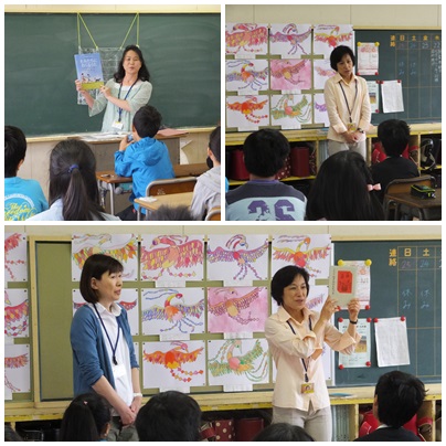 5・6年生の各教室で、読み聞かせボランティアのスマイルの皆さんによる読み聞かせが行われました。本日は、岩倉市の「語りの会」の皆さんにも来ていただいて、ストーリーテリングによるお話も聞かせていただきました。6年2組では、お礼に「つばさをください」を合唱し、読み聞かせボランティアの皆さんに聞いていただきました。