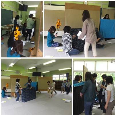読み聞かせグループの皆さんが、ふれあいホールで、来週開催される「おはなし会」の練習や準備を行ってくださっています。
