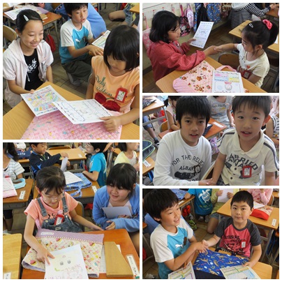 ペア交流(1・6年生) 公開日 2014/05/23 更新日 2014/05/23 今日のできごと ○ 5月23日(金) 1年生と6年生のペア交流の様子です。1年生の教室で、名刺交換をして握手をしました。その後、手をつないで図書館へ向かいました。図書館では、本の借り方を6年生が1年生に優しく教えていました。 いいね(0)