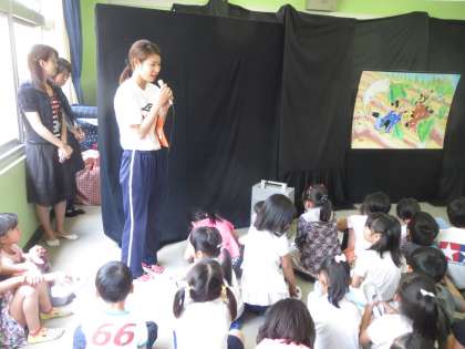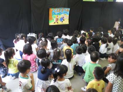 おはなし会 3日目 公開日 2014/05/29 更新日 2014/05/29 その他 5月29日(木) 1学期の「おはなし会」最終日の今日は、大型紙芝居「しちどぎつね」でした。七度もいたずらをするというきつねのお話です。きつねの役でゲスト出演した1年生の先生は、狐が化けた尼さんや幽霊のセリフまで声色を使い分けて大活躍でした。 いいね(0)