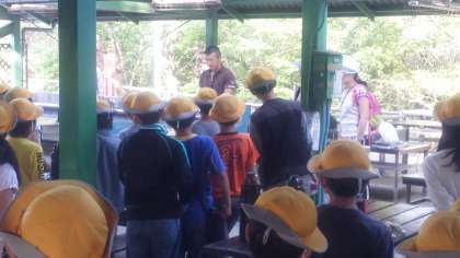 火おこし体験が終わりました。みんなで講師の先生にお礼を言いました。次は、夕食です。