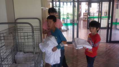 シーツの返却を行っています。