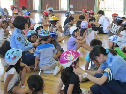 交通安全教室 公開日 2014/07/01 更新日 2014/07/01 3年生 ○ 7月1日(火) 交通安全教室を行いました。自転車の乗り方やヘルメットの被り方などを、江南警察署と愛知県警察本部の方4名に教えていただきました。この機会に、お子様と自転車の乗り方について、話し合っていただけたらと幸いです。 いいね(0)