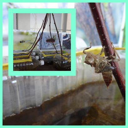 3年生が世話をしているヤゴが羽化しトンボになりました。ヤゴは曽野小学校からいただいたもので、1か月たった今でも15匹が元気にしています。子どもたちは、羽化第2号、第3号が続くよう、これからも一生懸命世話していくことでしょう。
