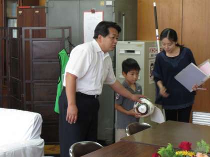 校長室訪問2 公開日 2014/07/04 更新日 2014/07/04 1年生 ○ 7月3日(金) 「校長先生の仕事は何ですか?」「好きな食べ物は?」「好きな色は?」「どこに住でいるんですか?」……子どもたちはたくさん質問していました。 いいね(0)