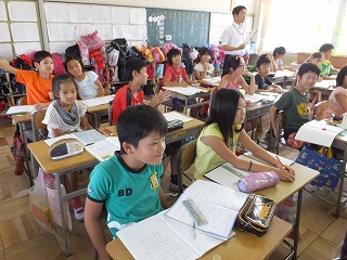 ○ 7月15日(火) 4年生の算数の授業の様子です。位に気をつけて、少数の計算に取り組んでいます。