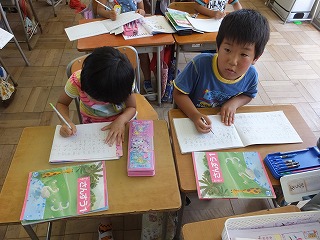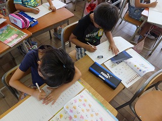 ○ 7月15日(火) 1年生の算数の授業の様子です。1学期の復習問題に真剣に取り組んでいます。