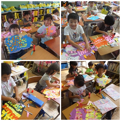 1年生では、図工「いたらいいなこんなうみのいきもの」の時間に、それぞれが工夫して、見たことのないようなすてきな生き物を作っています。