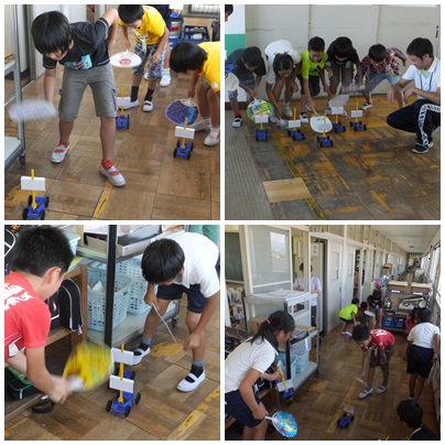 風のはたらき(3年生) 公開日 2014/09/25 更新日 2014/09/25 3年生 ○ 9月25日(木) 3年生では、「風のはたらき」を調べる車を作りました。うちわで風を送って、車の動きを調べています。 いいね(0)