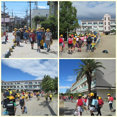 台風18号の影響で11時15分からの授業開始となりました。風は残っているものの、青空の中、子どもたちは元気よく登校してきました。
