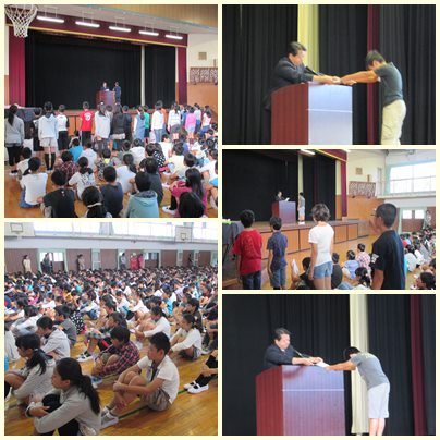 今日の朝礼では、後期の代表委員・学級委員・委員会委員長の任命式を行いました。「選ばれた責任」「選んだ責任」を自覚して半年間がんばってほしい、みんなが思いやりの気持ちをもって学級作りに取り組んでほしい、校長先生から後期のスタートに向けて励ましのお話がありました。