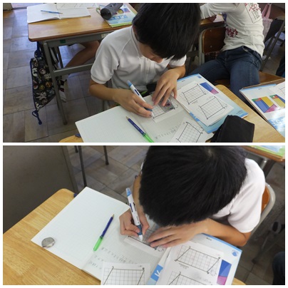 算数(5年生) 公開日 2014/11/06 更新日 2014/11/06 5年生 ○ 11月6日(木) 5年生の算数では、「平行四辺形の面積を求める公式を考えて、説明できるようにしよう」という課題に取り組んでいました。これまで学習した知識を生かして、平行四辺形に補助線を入れて考えていました。 いいね(0)