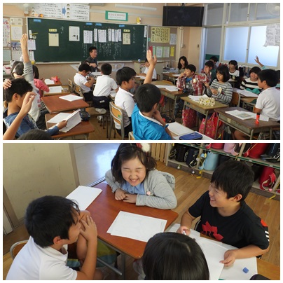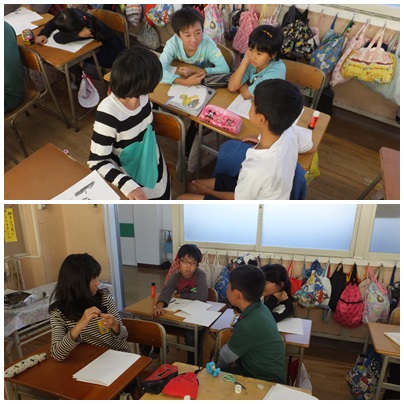 「ごんぎつね」の最終場面におけるごんぎつねの心情を考える学習に取り組んでいました。授業の終盤では、物語の中の「まだ青い煙が銃口から細く出ていました。」の「青」に注目して、この「青」が何を表しているのかグループで話し合った後、全体で意見を出し合いました。「ごんの死を表している。」「兵十の涙、悲しみを表している。」「ごんの魂だ。」等、たくさんの意見が出されました。