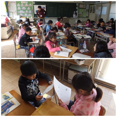 「じどう車くらべ」(1年生) 公開日 2014/11/18 更新日 2014/11/18 1年生 ○ 11月18日(火) 1年生の国語「じどう車くらべ」の授業の様子です。トラックの仕事と仕組みをまとめた後、ペアでまとめたことを説明し合いました。 いいね(0)