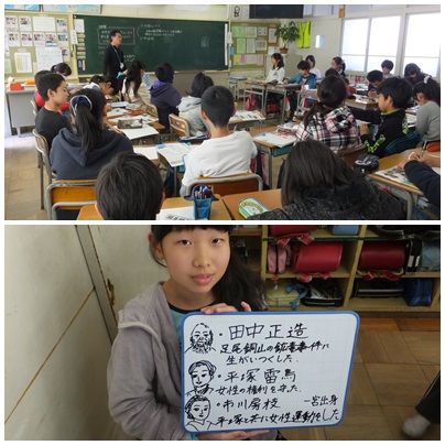 「世界に歩み出し日本」(6年生) 公開日 2014/11/18 更新日 2014/11/18 6年生 ○ 11月18日(火) 6年生の社会科の授業の様子です。田中正造、平塚らいてう、市川房枝の3人の人物を調べることで、産業の発展によって人々の生活や社会はどのように変化したかについて話し合いました。 いいね(0)