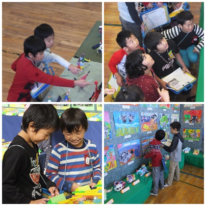北っ子作品展 公開日 2014/11/21 更新日 2014/11/21 今日のできごと ○ 11月21日(金) 「北っ子作品展」をペア学級で鑑賞している様子です。 本日(15:00〜16:30)より、一般公開が始まります。 明日は、9:00〜14:30の時間帯で公開をしています。 ご来校をお持ちしております。 いいね(0)