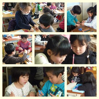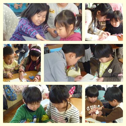 保護者の方々に入学に関わる説明をさせていただきました。その間、新入児は本校1年生と交流会を行いました。1年生が学校の様子を説明した後、ペアになってピョンピョンガエルを作って楽しく交流しました。今日のために一生懸命準備をしてきた1年生の子どもたちは、お兄さん、お姉さんとして頼もしい姿を見せてくれました。