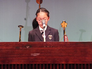 来賓あいさつの後に行われた体験発表では、西市西子ども会の代表が、本年度の子ども会の取組について発表しました。