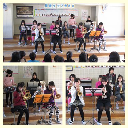 器楽クラブ発表会 公開日 2015/02/19 更新日 2015/02/19 クラブ・委員会 ○ 2月19日(木) 長放課に器楽クラブの発表会があり、「木星」「負けないで」などの曲を披露しました。月に2回しかないクラブの時間以外にも、休み時間に練習を重ねてきた成果が、美しい音色となって奏でられました。 いいね(0)
