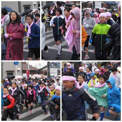 第4回岩倉市民健康マラソンが行われました。雨にも関わらず多くの子どもたちが参加していました。2.5kmコースのスタート地点の様子です。どの子も、力を振り絞って走っていました。