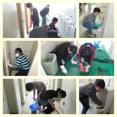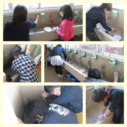 6年生 奉仕活動 その1 公開日 2015/03/04 更新日 2015/03/04 6年生 ○ 3月4日(水) 5時間目・6時間目に6年生が奉仕活動を行いました。卒業まであと12日、学校に感謝し、よりよい環境作りをしようという気持ちで取り組みました。職員室や校長室の油ふき、トイレ掃除、手洗い場掃除など、一生懸命活動しました。 いいね(0)