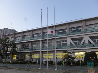 3月11日(水)は、東日本大震災の発生から4年目にあたります。岩倉北小学校でも、弔意を表すために半旗を掲揚しました。また、震災が発生した午後2時46分に合わせて、1分間の黙祷を行いました。震災により犠牲となられた方々のご冥福と、1日でも早い復興をお祈りいたします。