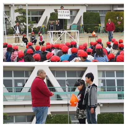 また、今年度、アルミ缶回収の収益や、ベルマークの点数で購入した物品の紹介と贈呈がPTA会長さんよりありました。電動鉛筆けずり、黒板消しクリーナー、加湿器を購入しました。