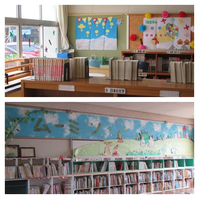 図書ボランティア「オープンセサミ」のみなさんが図書館を春色に模様替えしてくださいました。高学年図書館は卒業バージョン、低学年図書館や廊下は春バージョンです。調べ学習室へ向かう階段の掲示物の桜にも花が咲きました。図書館を訪れる子どもたちからも歓声があがっていました。