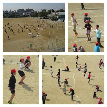 4年生は「学年末だよ全員集合!縄跳び大会」を行いました。1分間で前跳び、後ろ跳びの回数を得点化して、学級対抗で行いました。縄跳びが得意な人も、苦手な人も、自分の精一杯の力を発揮し、互いにカバーし合い、励まし合って取り組みました。結果は2組が優勝しましたが、どの学級も温かな声援が飛び交うすばらしい会となりました。