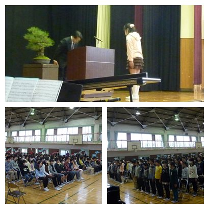 卒業式予行に引き続き、6年生の修了式を行いました。代表の児童が6年生1年間の修了証を受け取った後、校長先生のお話を聞きました。真摯な姿で学習に取り組んだこと、学校行事や委員会、通学班など様々な場面で全校をリードしたこと、低学年にやさしく接してくれたことなど、6年生ががんばってきたことをたくさん褒めてくださいました。また、校訓「正しく 強く 仲良く」になぞらえて、あたりまえのことがあたりまえにできること、責任を持ってやり遂げること、新しい出会いを大切にすることなど、はなむけの言葉もありました。1年間休まず元気よく登校できた人たち、6年間欠席することなく登校できた3人の紹介もありました。