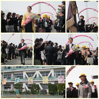 卒業式 その2 公開日 2015/03/20 更新日 2015/03/20 学校行事 ○ 3月20日(金) 卒業式の歌・別れのことばでは卒業生・在校生が言葉で思いをつなぎ、、在校生が「ビリーブ」を、卒業生が「旅立ちの日に」そして、全校で「また会う日まで さようなら」を合唱しました。体育館中に感動・感激の思いがあふれました。 式後はみんなで、卒業生の門出を祝福しました。 いいね(0)