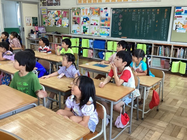今日も1年生の身体測定に合わせて、スマイルの皆さんに読み聞かせをしていただきました。連日の読み聞かせ、本当にありがとうございました。子どもたちが目をキラキラと輝かせてスマイルさんと一緒に絵本の世界に浸っていました。